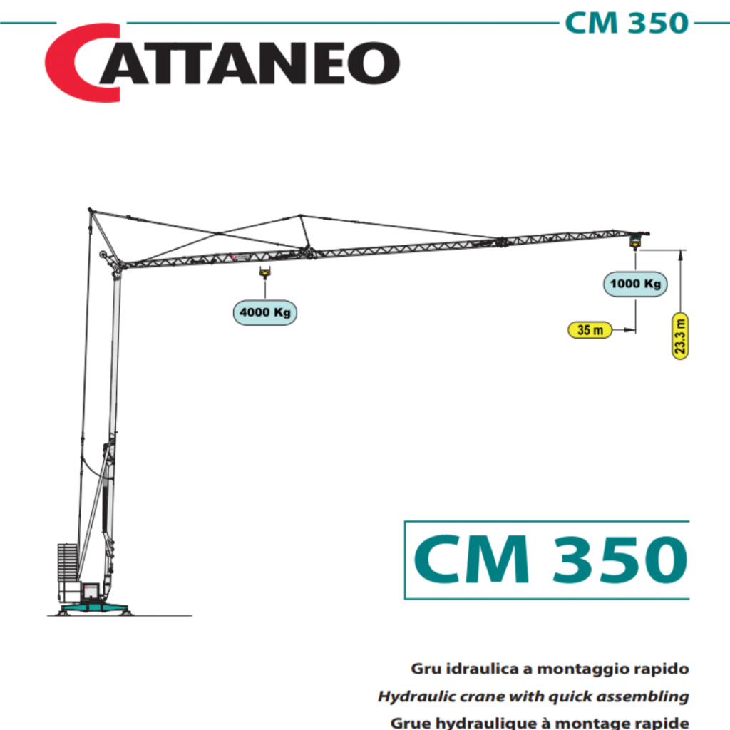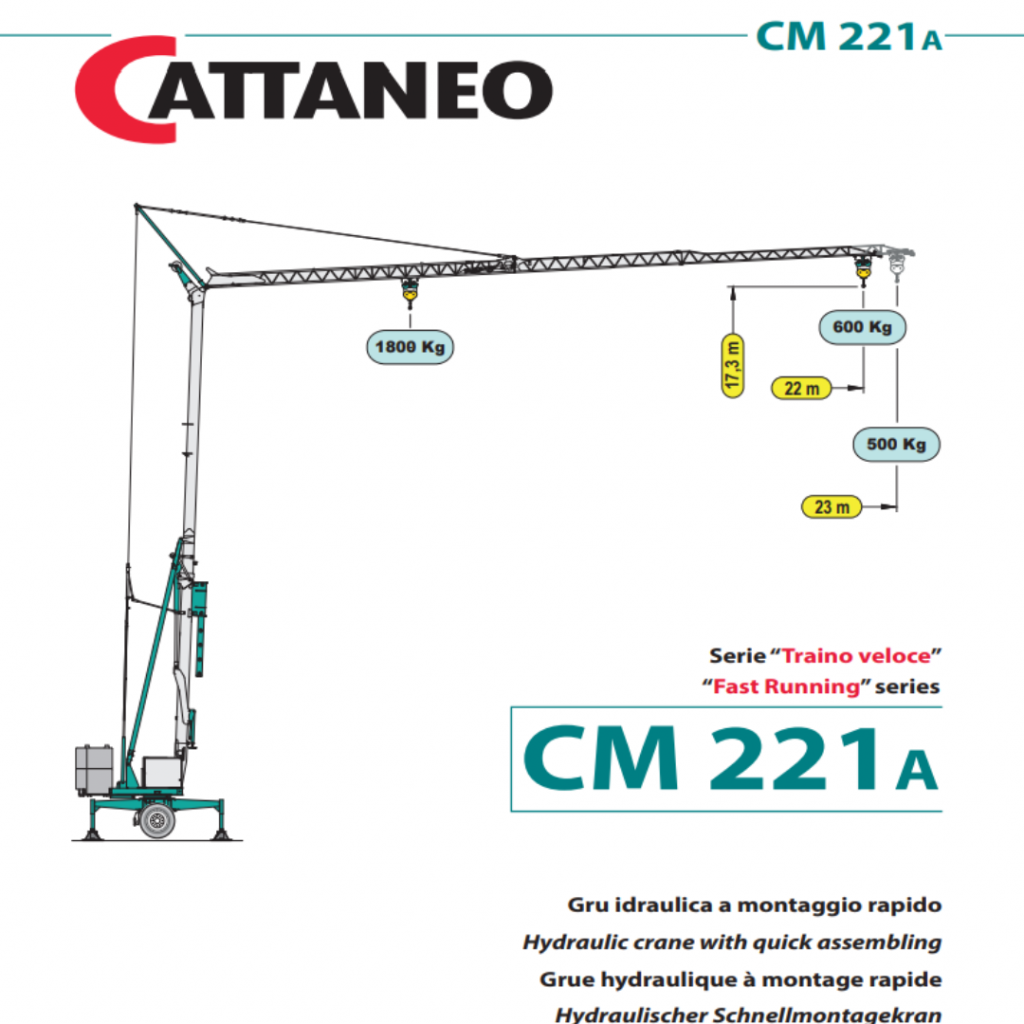 De maximale hijscapaciteit van een Cattaneo bouwkraan is verschillend per type kraan. Het varieert van 1800 tot 5000 kilo. De hijscapaciteit op vlucht varieert van 600 tot 1300 kilo.